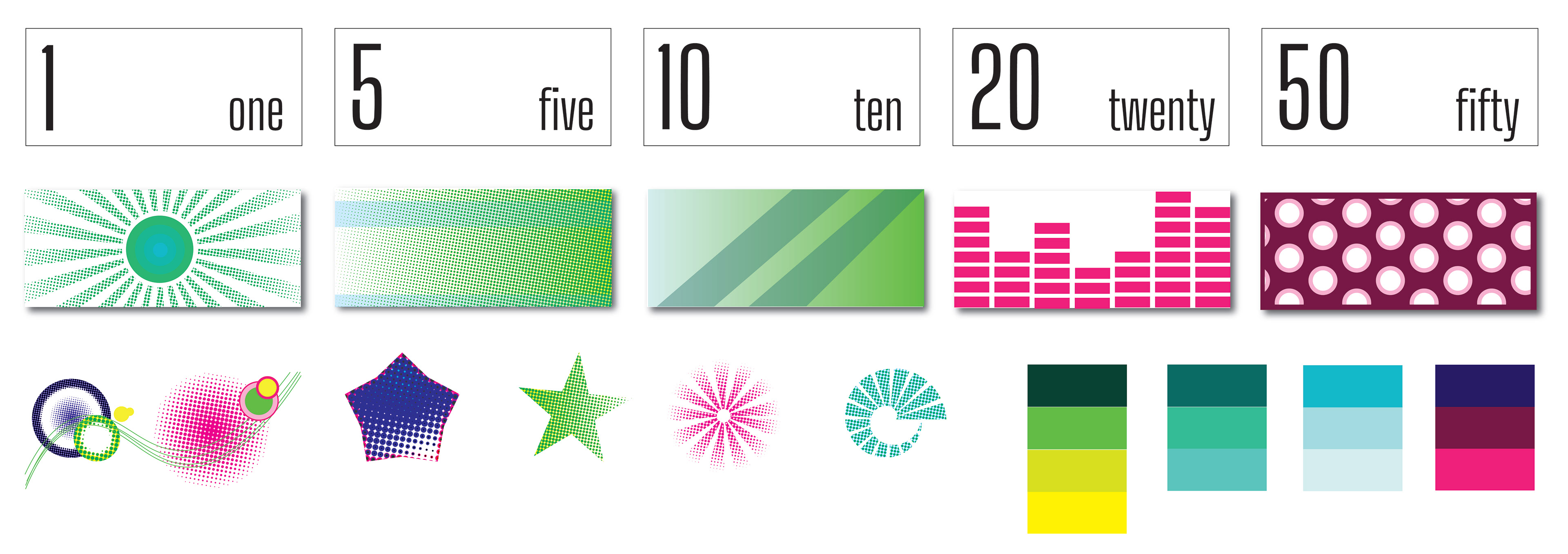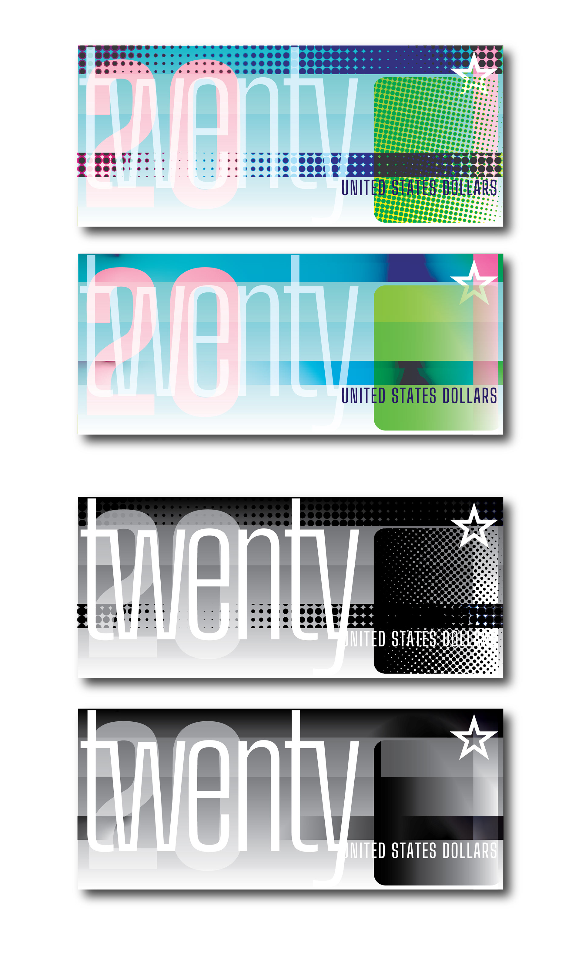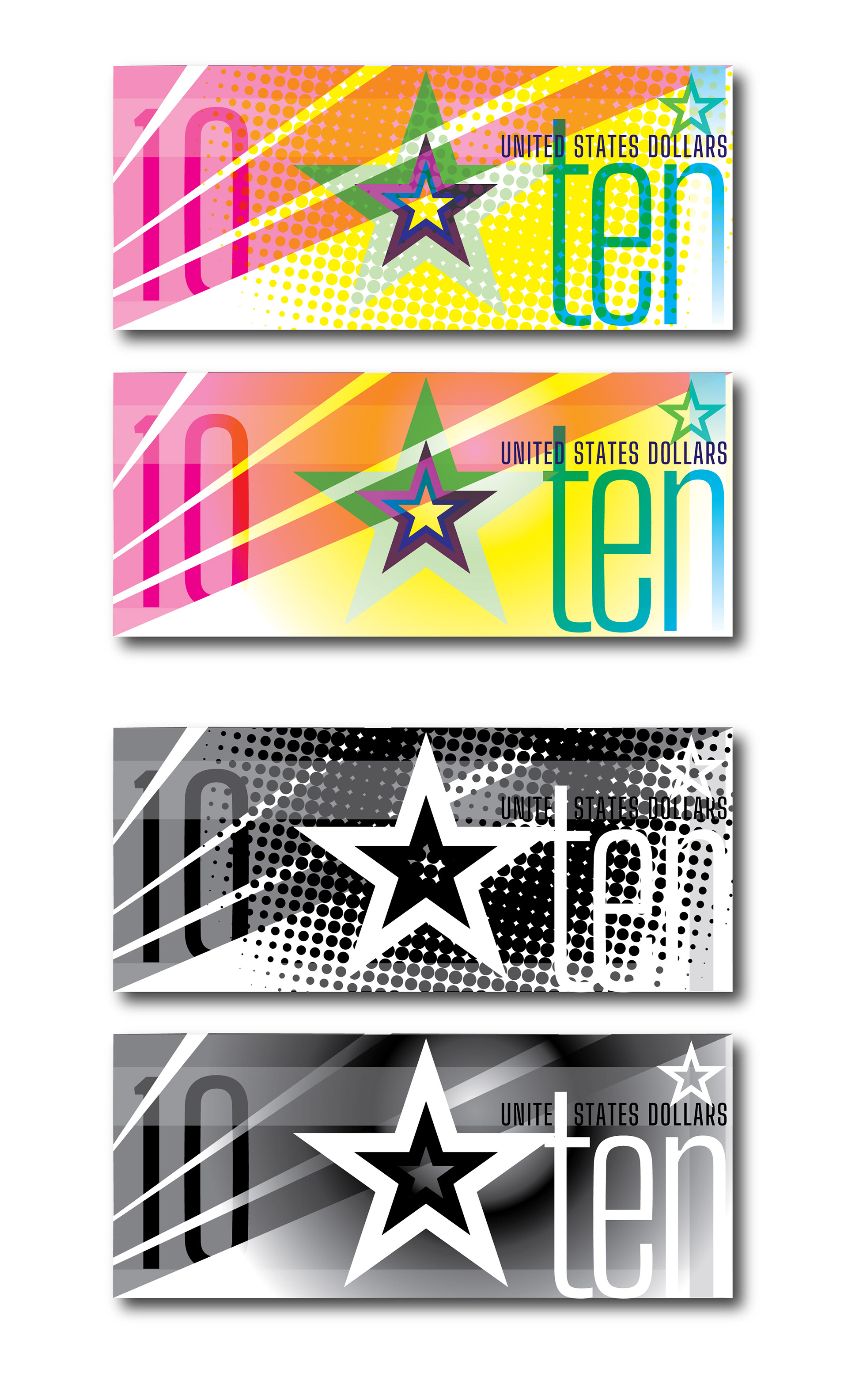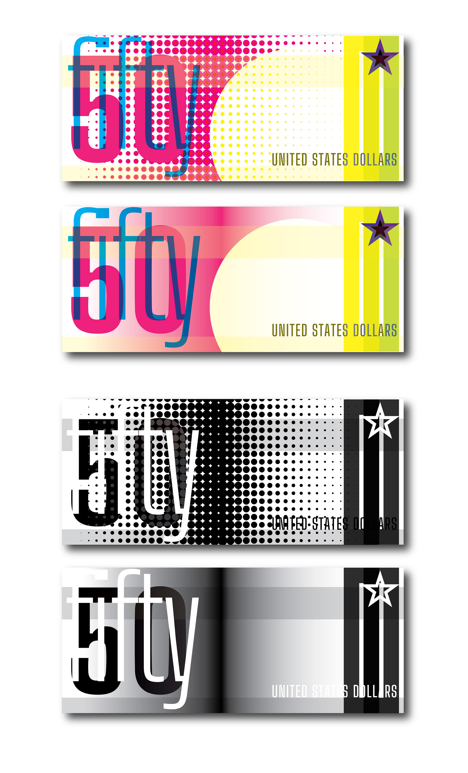 The goal of this project was to design a set of currency inspired by a particular design style. The parameters of the project were to include five denominations, be designed to look like it belongs to the design style by using appropriate visual elements, and making the series of notes cohesive while allowing for variation between each individual note.