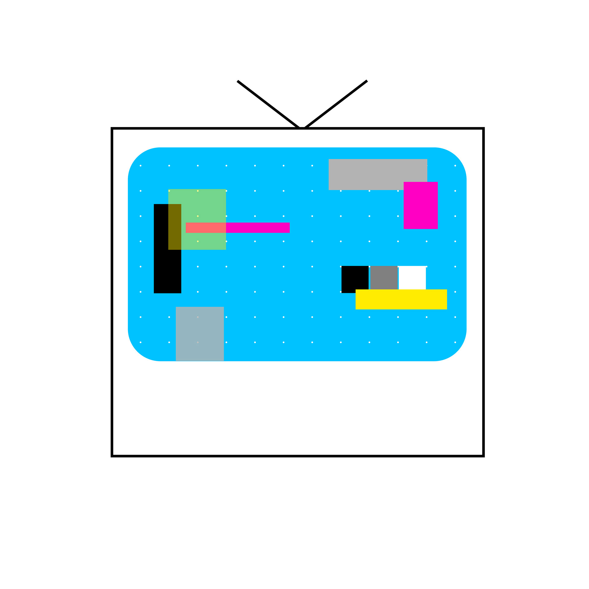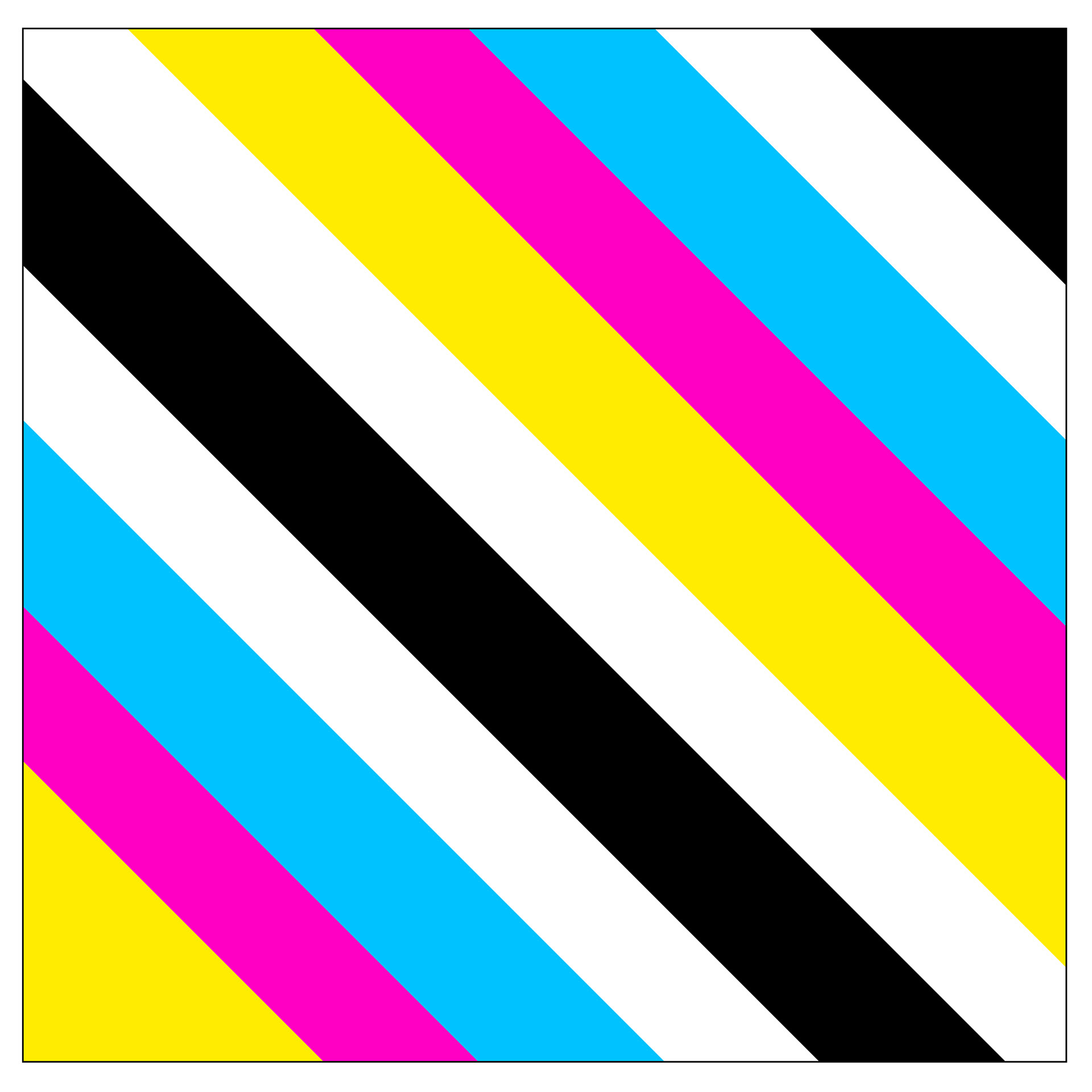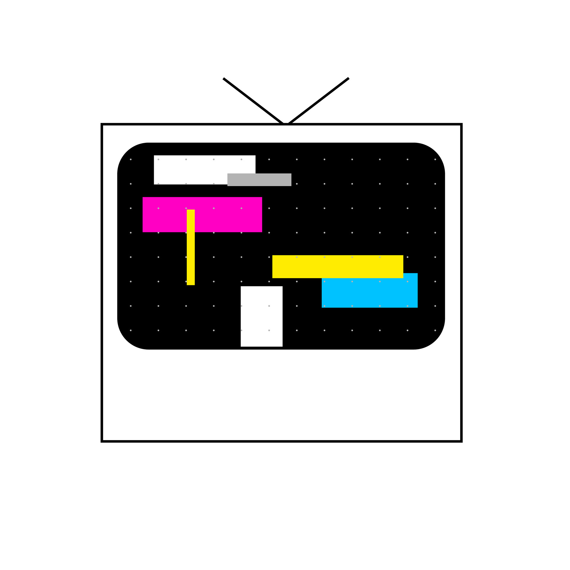 The first coded sketches explore the CMYK color model of Cartoon Network’s brand identity. They also explore a use of negative space, size, and rotation. I decided to add the colors one by one into each sketch and into the checkerboard key. This way the iterations do not become too busy and keep contrast in the background, colors, and shapes.