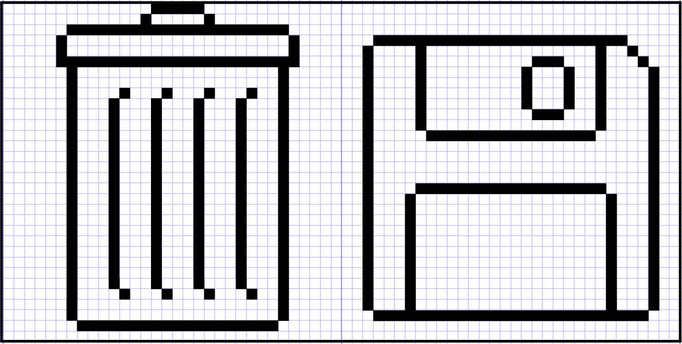 I started by attempting to mimic some icons from memory using a grid.